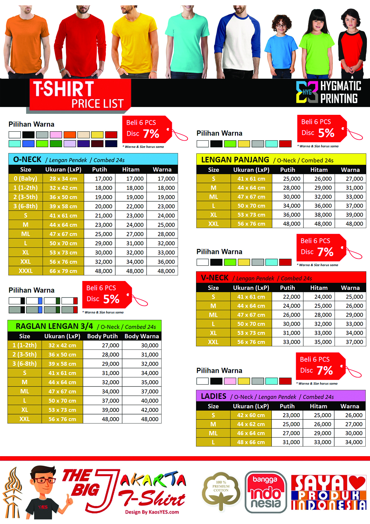 HYGMATIC menyediakan kaos polos dengan Bahan Terbaik 100% Asli Cotton Combed 20s/24s dengan harga GROSIR dan sangat MURAH.