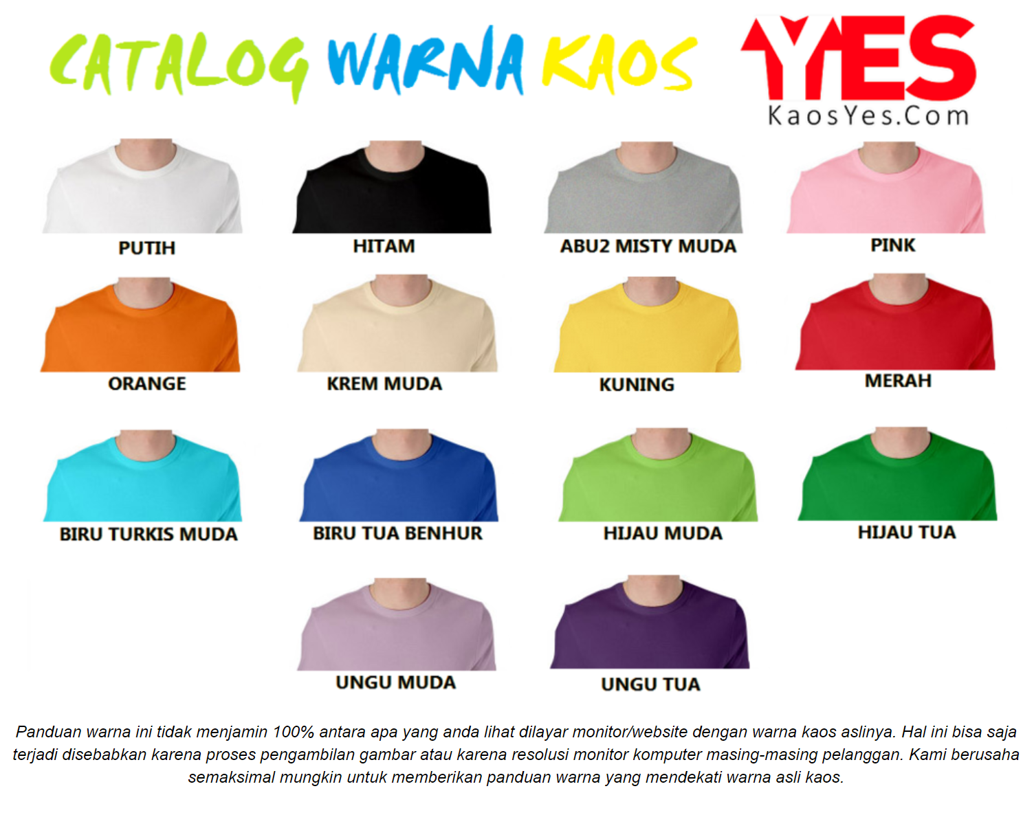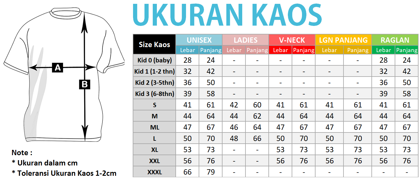 - Bahan kaos tidak menyusut dan tidak luntur saat dicuci.